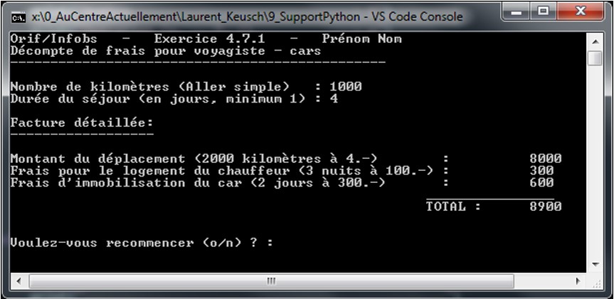 Au terme, il demandera si l’utilisateur souhaite quitter le programme ou refaire un calcul.